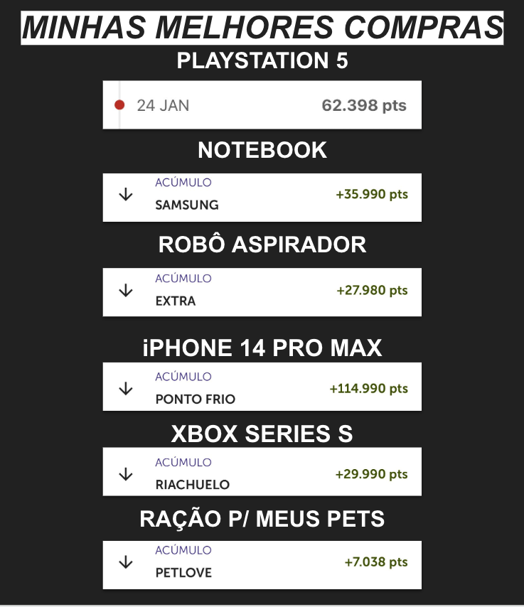 Essas são algumas das minhas melhores compras com acumulo de pontos.