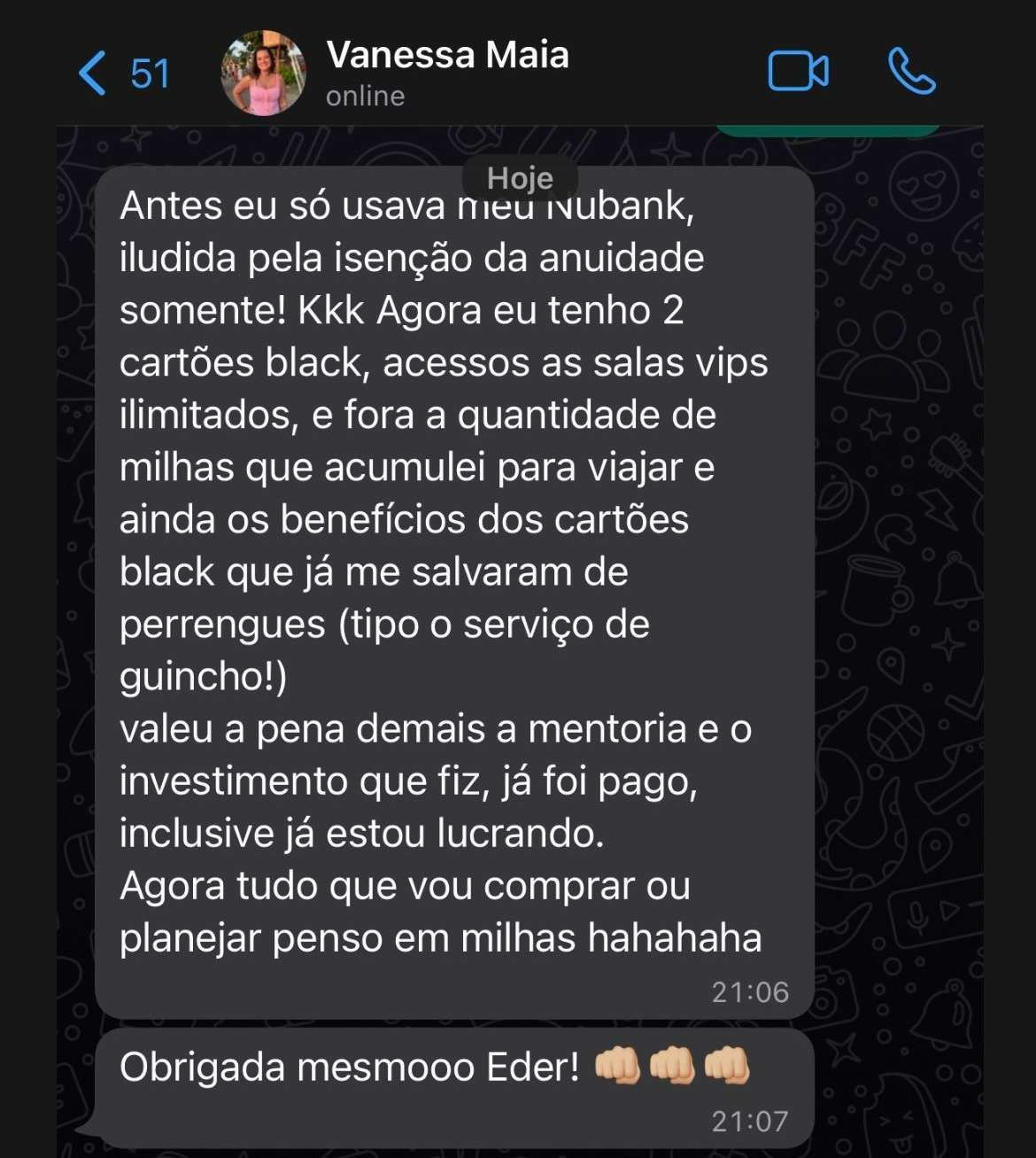 Então, se você não apenas quer fazer parte do mundo das milhas, mas também ter sucesso na sua jornada, basta clicar no botão abaixo para conhecer mais sobre a minha metodologia.